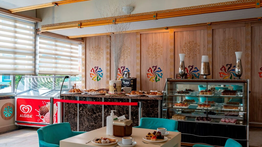 All inclusive: snídaně, pozdní snídaně, obědy a večeře formou otevřeného bufetu, občerstvení v průběhu dne, půlnoční občerstvení, místní alkoholické a nealkoholické nápoje zdarma, za poplatek: importované nápoje, čerstvé ovocné šťávy, nápoje v lahvích, turecká káva, zmrzlina a veškeré nápoje po 23:00
