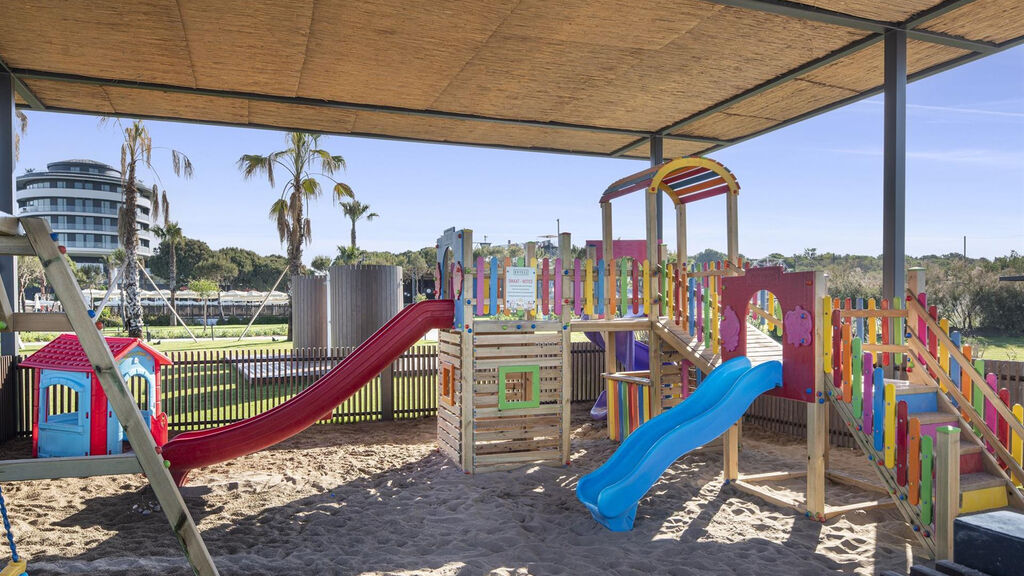 mini klub (4-7 let), midi klub (8-12 let), teen klub (13-15 let)aquaparkzábavní park, hřiště na plážidětská restauracedětské postýlky, dětské židličkymístnost pro péči o miminkozapůjčení kočárku (za deposit a na vyžádání)hlídaní dětí (za poplatek)