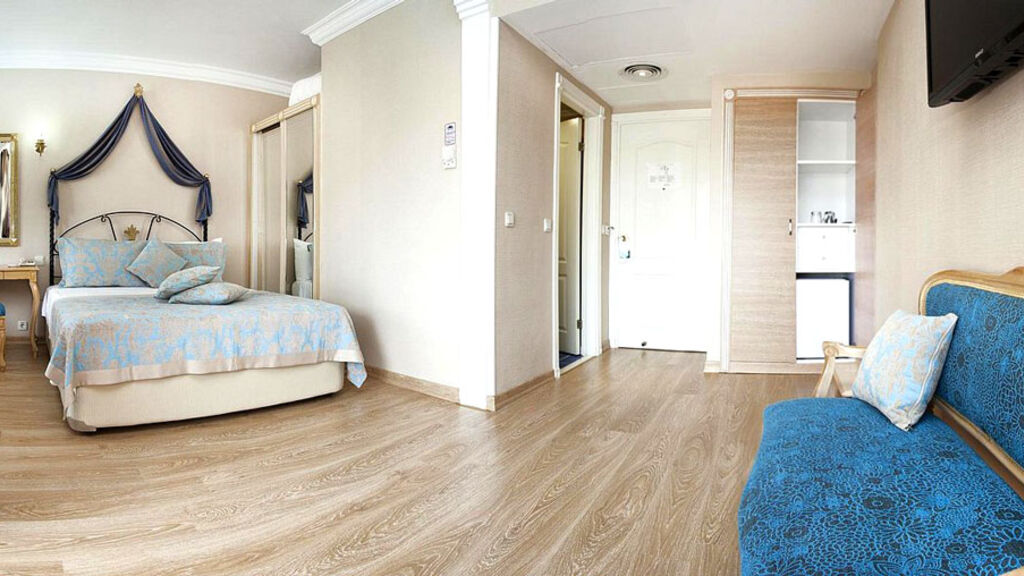Pokoje s balkonem a sociálním zařízením (sprcha nebo vana, WC, fén) jsou klimatizovány (klimatizace zdarma) a vybaveny TV/SAT, telefonem, trezorem (zdarma), Wi-Fi (zdarma), minibarem (zdarma) a příslušenstvím pro přípravu kávy a čaje. Možnost jedné přistýlky. Maximální obsazenost tři dospělí.