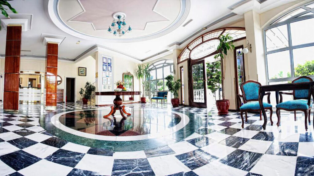 Vybavení hotelu:84 pokojů ve 3 patrech, 2 výtahy. Prostorné pokoje.Vstupní hala, 24 h recepce, lobby, 3 bary, venkovní bazén (lehátka a slunečníky zdarma), sluneční terasa, TV místnost, prádelna, půjčovna aut.