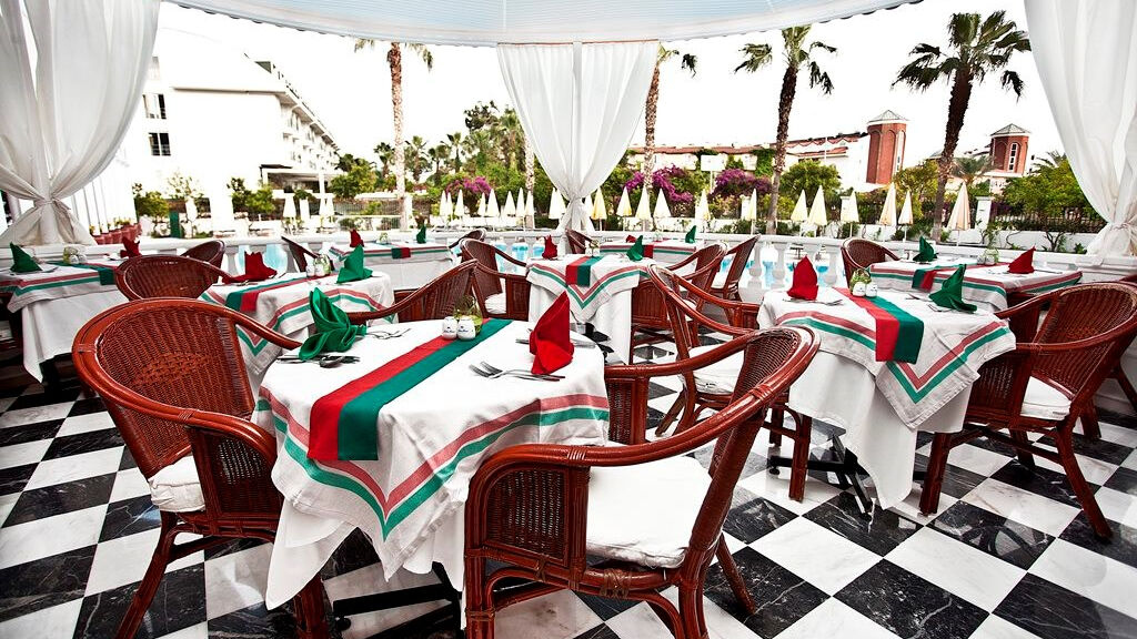 Služby all inclusive zahrnují plnou penzi formou bufetu (snídaně od 7:30 do 10:00 h, pozdní kontinentální snídaně od 10:00 do 11:00, obědy od 12:30 do 14:00 h, večeře od 19:30 do 21:00 h) v hlavní hotelové restauraci, odpolední občerstvení, neomezenou konzumaci vybraných místních alkoholických i nealkoholických nápojů od 11:00 do 23:00 h. Uvedené časy jsou orientační.