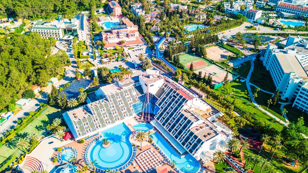 Hotelový komplex leží přímo u nádherné oblázkové pláže a je obklopený pečlivě udržovanou zahradou. Centrum letoviska Kemer (Turecko) je vzdáleno cca 7 km. K hotelovému vybavení patří recepce (Wi‑Fi u recepce zdarma), několik restaurací (3 à la carte – čínská, italská a turecká kuchyně) a barů (včetně baru na pláži), bazén, bazén se skluzavkami a dětský bazén. Slunečníky, lehátka a osušky jsou u bazénu i na pláži k dispozici zdarma. Dále mohou klienti využít dětské hřiště, miniklub, nákupní arkádu, 2 tenisové kurty, stolní tenis, plážový volejbal, saunu, turecké lázně, fitness a animační programy. Hotel doporučujeme především rodinám s dětmi (2 děti do 12 let na přistýlce pobyt a strava zdarma).
