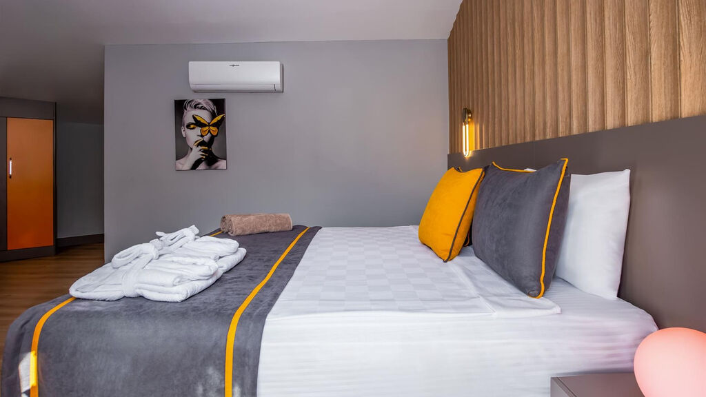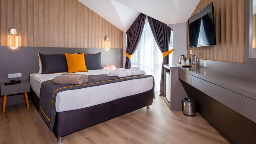 Hotel má 194 pokojů.Pokoje jsou vybaveny balkonklimatizaceLED TV/SAT, hudební kanály