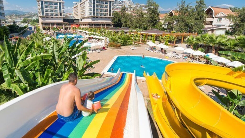 Vybavení hotelu:250 pokojů, vstupní hala s recepcí, 3 restaurace, 2 à la carte restaurace, snack bar, 3 bary, konferenční místnost, herna, obchody, lékařská služba, fitness. V zahradě bazény, aquapark, bar u bazénu, terasa s lehátky a slunečníky zdarma.