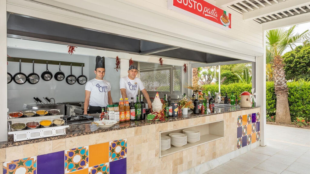 2 venkovní bazény (719 a 267 m2)venkovní bazén se 3 skluzavkami (120 m2) (vyhřívaný v březnu, dubnu a listopadu).vnitřní bazén (84 m2) (vyhřívaný v březnu, dubnu a listopadu, otevřený v zimní sezóně)hlavní restaurace pro 750 osobrestaurace s občerstvenímrestaurace A'la Carte (ryby/gril)cukrárna 6 barůamfiteátrWI-FI