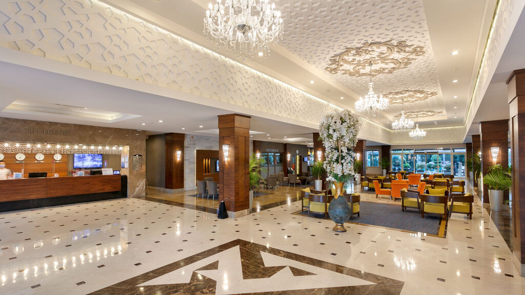 Luxusní hotelový komplex leží cca 330 m od písečné pláže. Hostům je k dispozici vstupní hala s recepcí, Wi‑Fi a internet zdarma, hlavní restaurace, několik à la carte restaurací (turecká, italská, mexická, rybí atd.) a barů (včetně plážového), venkovní bazén, dětský bazén, mini aquapark a vnitřní bazén. Dále mohou klienti využít turecké lázně, saunu, fitness centrum, aerobik, tenis (osvětlení za poplatek), basketbal, mini fotbal, stolní tenis, kulečník, šipky a animační programy. Dětem je určeno dětské hřiště a dětský klub (4─12 let). Tento hotel s výbornými službami doporučujeme nejen rodinám s dětmi, ale také všem milovníkům skvělého jídla a kvalitních služeb.