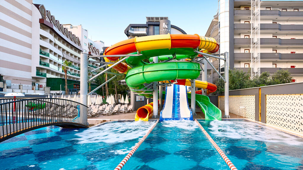 Vybavení hotelu: Vstupní hala s recepcí, několik restaurací a barů, minimarket, wellness centrum, několik bazénů s tobogány, terasa na slunění s lehátky a slunečníky zdarma. Skládá se ze dvou budov - Hlavní budovy a vedlejší (Deluxe) pouze pro dospělé.