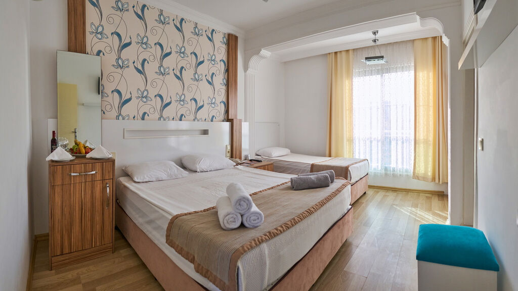 Nový moderně zařízený hotel leží v krásné zahradě pouhých 50 m od nádherné písečné pláže, na které má hotel svoji soukromou část s lehátky a slunečníky zdarma v letovisku Side (Turecko). Hotel disponuje recepcí, směnárnou a restaurací s barem. V areálu se dále nachází venkovní bazén, dětský bazén a dětské hřiště. Lehátka a slunečníky jsou u bazénu, stejně jako na pláži, k dispozici zdarma. K nabízeným službám patří také sauna, masáže, peeling a služby kadeřníka (za poplatek). Pro hosty jsou přichystány nepravidelné animační programy a 1x týdně turecký večer. Doporučujeme všem, kteří chtějí svoji dovolenou u krásné pláže spojit s poznáním oblíbeného Side, které v sobě skýtá nespočet historických památek a umožňuje každovečerní procházky.