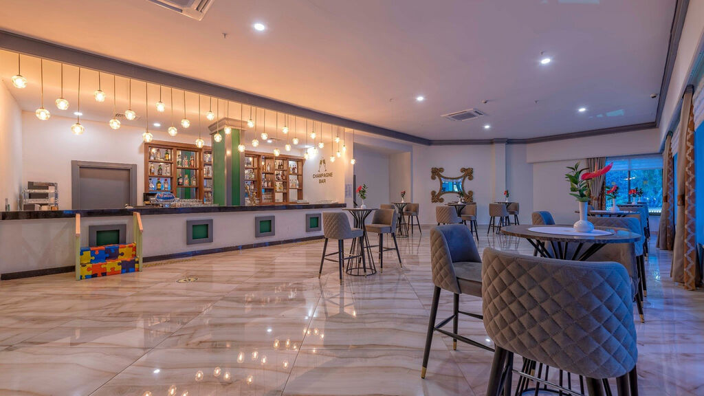 Rozsáhlý prázdninový komplex se skládá z hlavní budovy a z vedlejšěí budovy. Obě budovy disponují výtahy, k dispozici vstupní hala s recepcí (24 hod.) hlavní restaurace, 3 a la carte restaurace (italská, turecká, plody moře), 7 barů, včetně baru u bazénu (24/7), plážového baru (10:00-18:00), lobby baru (10:00-23:00), několik snack barů, cukrárna, diskotéka, minimarket, obchůdky, WiFi zdarma. Venkovní bazén, bazén se skluzavkami, dětský bazén, krytý bazén (v zimě vyhřívaný). Lekátka, slunečníky a osušky u bazénu zdarma. Za poplatek lékař, kadeřník, fotograf, prádelna. Akceptované kreditní karty Visa, Master Card.