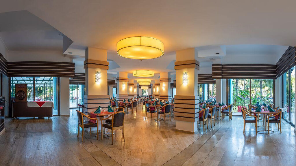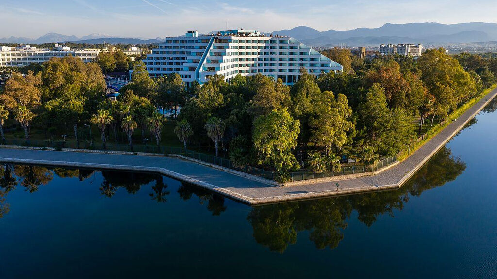Hotel se nachází v krásné a rozlehlé zahradě, která se rozprostírá kolem celého komplexu a přechází v přírodní jezero a překrásnou písčitou pláž s oblázky. Velmi příjemný areál s venkovními bazény, skluzavkami i dětským bazénem je vhodnou volbou pro rodiče s dětmi. Nádherné okolí, příjemný areál a pouhých 7 km vzdálené historické centrum města Side, tak vytváří ideální místo pro strávení vysněné dovolené.