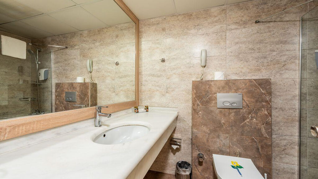 Pokoje s balkonem nebo terasou a sociálním zařízením (vana, WC, fén) jsou klimatizovány (klimatizace zdarma) a vybaveny TV/SAT, telefonem, trezorem (za poplatek) a minibarem. Možnost jedné přistýlky. Maximální obsazenost tři dospělí.