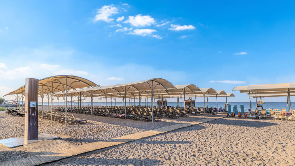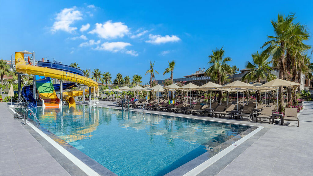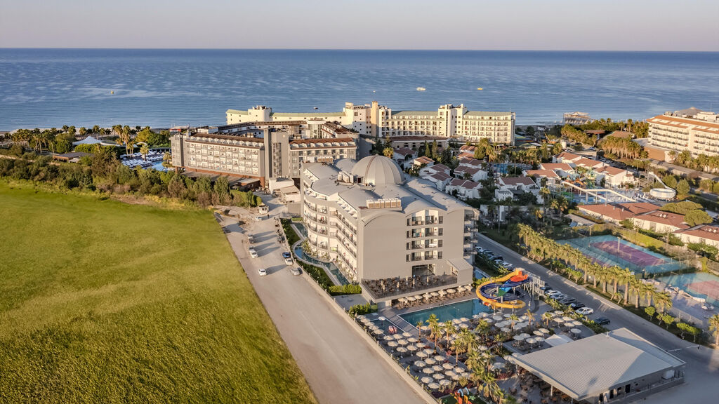 Vybavení hotelu:Hlavní budova a nově postavená budova v roce 2023, celkem 520 pokojů na rozloze 40,000 m2, celkem 7 výtahů, hlavní bazén, dětský bazén, bazén se skluzavkami, celkem 5 tobogánů (2 u hlavní budovy, 3 u nové budovy), lehátka a slunečníky u bazénu zdarma, osušky k bazénu zdarma, hlavní restaurace, Botanik restaurace, lobby bar, patisserie, bar na pláži, snack restaurace & bar u bazénu, 3 A la Carte restaurace (Rybí, Turecká a Italská za poplatek - nutná rezervace - v provozu od 01.06.-30.09.), služby lékaře nebo zdravotní sestry (za poplatek), pokojová služba (za poplatek), nákupní arkáda (market, obuv a doplňky, domáci textil, oblečení, kožené zboží, zlatnictví), služby fotografa (za poplatek), organziace oslav a jiných akcí (za poplatek), služby prádelny (za poplatek), 3 konferenční místnosti.