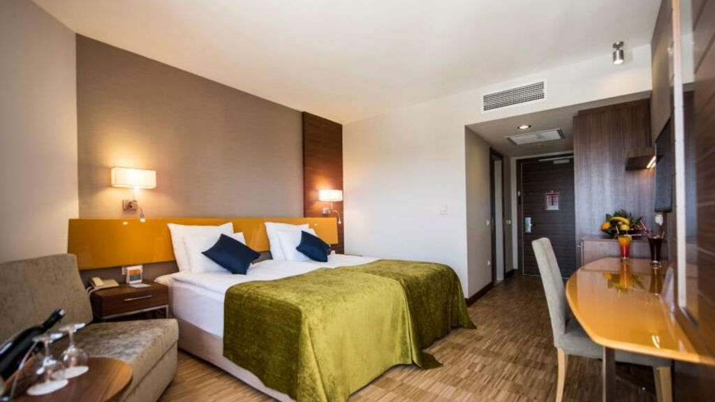 Vybavení hotelu:671 pokojů umístěných v hlavní budově (5patrová, 5 výtahů) a v budovách v zahradě (2patrové, bez výtahu), vstupní hala s recepcí, 2 hlavní restaurace, 1 á la carte restaurace (rybí, za poplatek, rezervace nutná) 2 tématické restaurace (turecká, rakouská, 1x jedna z nich zdarma, rezervace nutná), snack bary, bary, konferenční místnosti, kadeřník, obchody, prádelna, SPA centrum, lékař, lékárna, knihovna, 3 bazény (1 vyhřívaný v závislosti na počasí), vnitřní bazén, 3 dětské bazény (1 vyhřívaný v závislosti na počasí), skluzavky, terasa na slunění (lehátky, slunečníky a osušky zdarma).