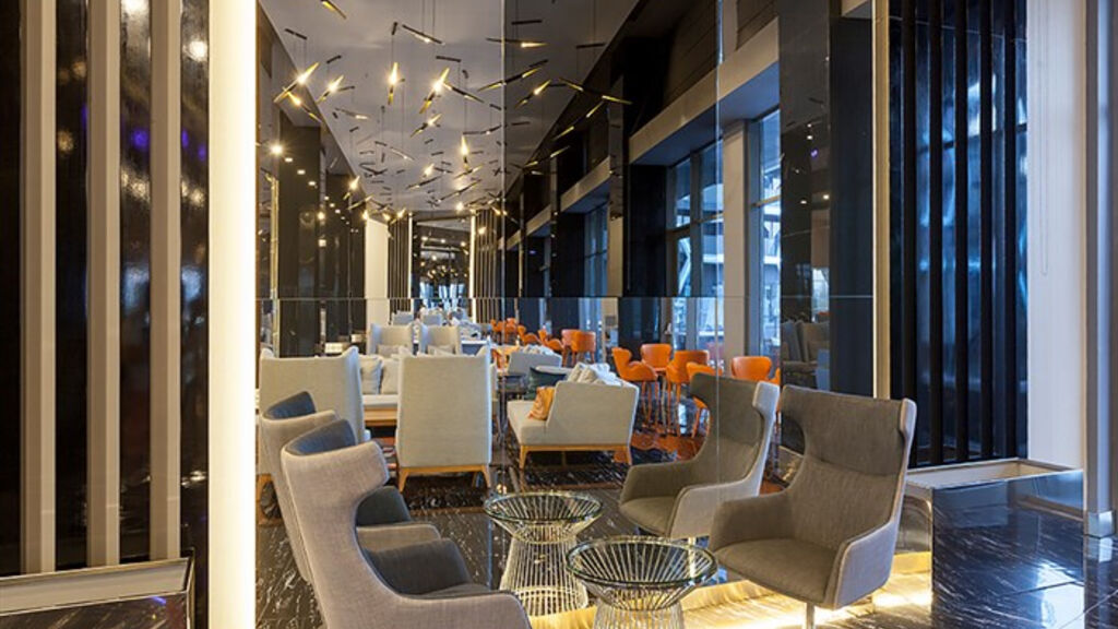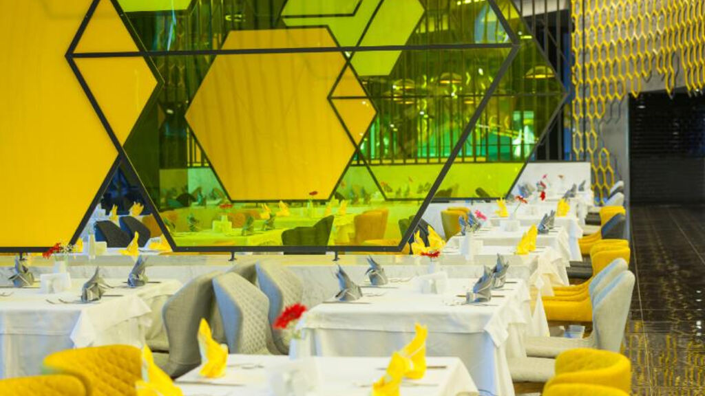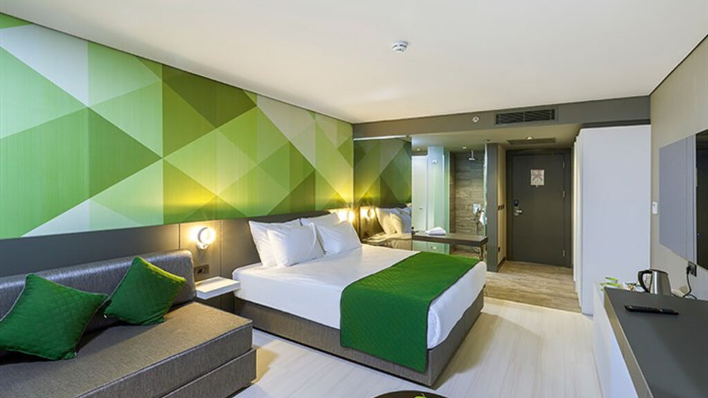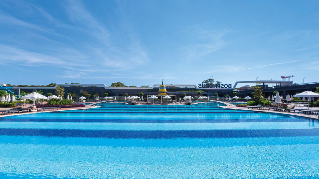 455 pokojů umístěných v hlavní budově (10patrová), vstupní hala s recepcí, hlavní restaurace, 4 à la carte restaurace, bary, snack bary, konferenční prostory, obchody, SPA centrum, pronájem auta, lékař, kadeřník, 3 bazény (lehátka, slunečníky a osušky zdarma), terasa na slunění, vnitřní bazén, dětský bazén, aquapark.
