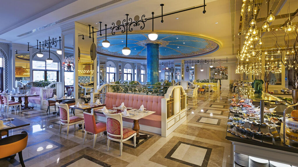 hlavní venkovní bazén, 9700 m2.6 venkovních bazénů Lake House, 1200 m2.vodní park, 6 skluzavek, 1184 m2 (od 01.06.22)vnitřní vyhřívaný bazén (zimní sezóna)vyhřívaný venkovní bazén (zimní sezóna)hlavní restaurace Bosphorusrestaurace a la carte - gril, asijská, rybí, indická, turecká, italská, řeckábistro a 2 cukrárnyitalská restaurace s občerstvením12 barůdiskotékový barvitamin barvinný sklípek, bar Secret Terrace, Tower Roof bar - za poplatektenisový kurt