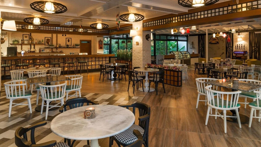 hlavní restaurace: druhy kuchyně: regionální, grilovaná jídla, dietní jídla, bezlepková jídla: na vyžádání, dětský formou bufetu, bezlaktózová jídla: na vyžádání, lehce stravitelná jídla, sezónní jídla, vegetariánská jídla, plnohodnotná jídla, formou bufetu, show cooking, s klimatizací, s terasou, vysoké židličky pro děti