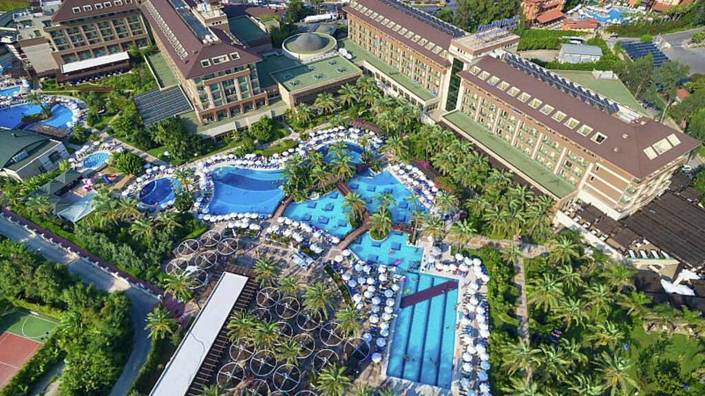 2 pětipatrové budovy a několik třípatrových bloků/vilek v zahrdě. Vstupníhala s recepcí, hlavní restaurace, 6 restaurací a la carte, několik barů. kavárna, obchodní arkáda, 3 konferenční místnosti. V zahradě 3 bazény (2 se skluzavkami), snack bar u bazénu, terasa na slunění s lehátky, slunečníky a osuškami zdarma.