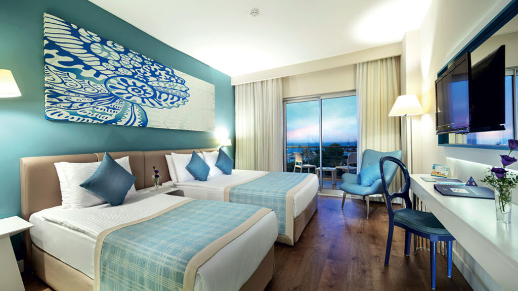 Hostům je k dispozici vstupní hala s recepcí, tři výtahy, konferenční místnosti, lobby bar, hlavní restaurace, tři à la carte restaurace (turecká, italská a rybí), bazén, bazén se skluzavkami, dětský bazén, vnitřní bazén (v provozu pouze na začátku a na konci sezony), bar u bazénu, bar na pláži, miniklub, animační programy pro děti a dospělé v češtině.