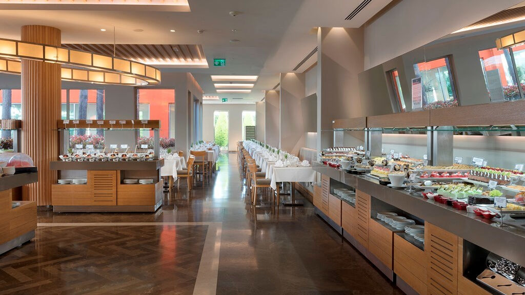 Restaurační zařízenírestaurace: 4hlavní restaurace "The Restaurant": druhy kuchyně: mezinárodní, dietní jídla: v ceně, na vyžádání, bezlepková jídla: v ceně, na vyžádání, bezlaktózová jídla: v ceně, na vyžádání, vegetariánská jídla: v ceně, na vyžádání, veganská jídla: v ceně, na vyžádání, formou formou bufetuu, v ceně, denně 07:00 - 10:00, 12:30 - 14:30 a 19:00 - 21:30, s terasou, vhodné oblečení