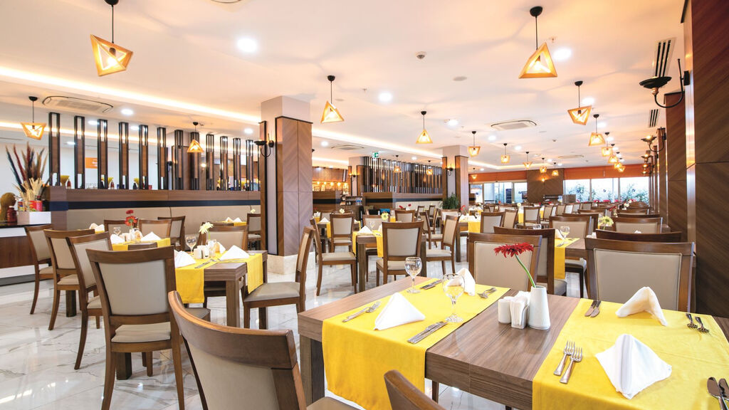 Hotel se skládá z hlavní budovy a 2 bloků, má vstupní halu s recepcí, hlavní restauraci, a’la carte restauraci, několik barů, venkovní bazén, vnitřní bazén, dětský bazén, spa centrum, turecké lázně, sauna, jacuzzi, masáže, salon krásy, kadeřnictví, tělocvična, aqua aerobik, stolní tenis, šipky, biliard, pétanque, mini fotbal, basketbal, plážový volejbal, vodní sporty, škola potápění, animační programy, živá hudba, knihovna, obchody, půjčovna motorových vozidel, směnárna, prádelna, čistírna, služby lékaře, fotograf, tel/fax, wifi internetové připojení, konferenční prostory