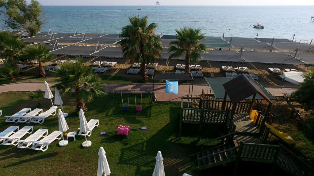 Soukromá písečná pláž leží 400 m od hotelu, svoz na pláž zajištěn, lehátka, slunečníky a osušky zdarma na pláži i u bazénu