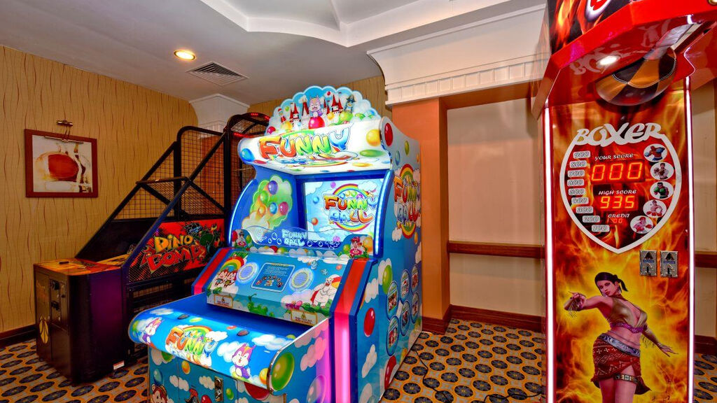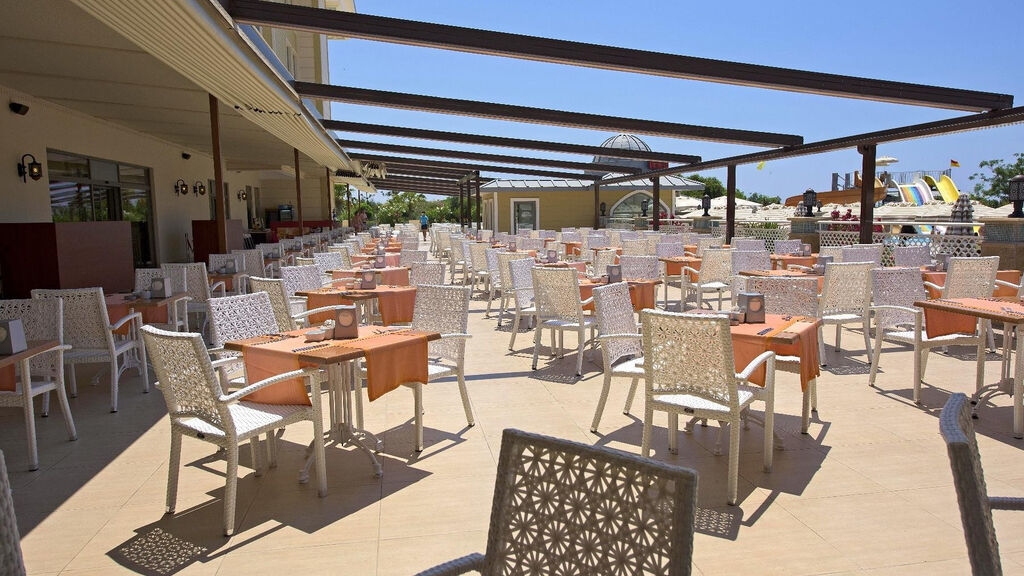 Vybavení hotelu:Celkem 462 pokojů v 5 budovách na rozloze 35,000 m2, vstupní hala s recepcí, hlavní restaurace, 3 A la Carte restaurace (Mexická, Asijská, Turecká - 1x za pobyt zdarma při pobytu min. 7 nocí), 5 barů, bistro, cukrárna, hlavní bazén, dětský bazén, bazén se 3 skluzavkami, lehátka, slunečníky a osušky zdarma, parkoviště (zdarma), služby prádelny (za poplatek), služby lékaře (za poplatek), služby kadeřníka (za poplatek), služby fotografa (za poplatek), nákupní možnosti, půjčovna aut (za poplatek).
