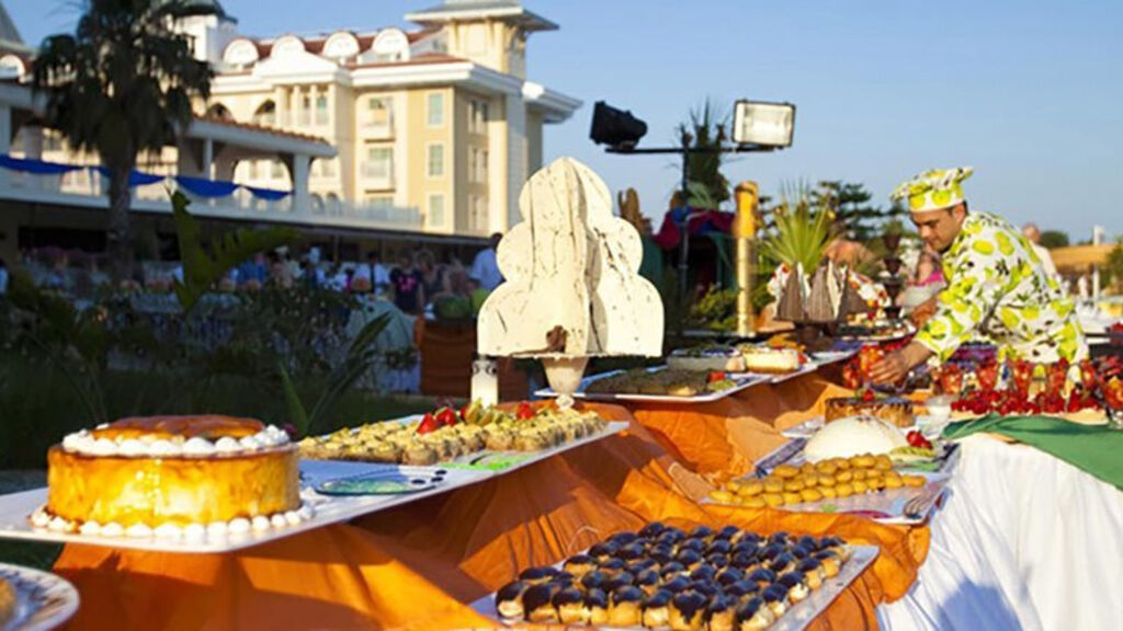 Vybavení: Hostům je k dispozici vstupní hala s recepcí a lobby barem, 2 výtahy, hlavní restaurací, 3 a la carte restaurace (turecká, mexická, orientální), cukrárna, internetová kavárna, Wi-Fi připojení ve veřejných prostorech zdarma, obchodní arkáda, několik barů včetně bazénového a plážového, vyhřívaný vnitřní bazén, venkovní bazény se skluzavkami, dětský bazén, mini club a disko pro děti, denní a večerní animační programy, sportovní aktivity a relaxace: basketball, stolní tenis, tenisové kurty, šipky, aerobic, boccia, fitness centrum, sauna, turecké lázně. Služby za poplatek: masáže a kosmetické procedury, prádelna, kulečník, elektronické hry, hlídání dětí, internetová kavárna, pronájem automobilu.
