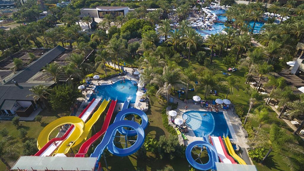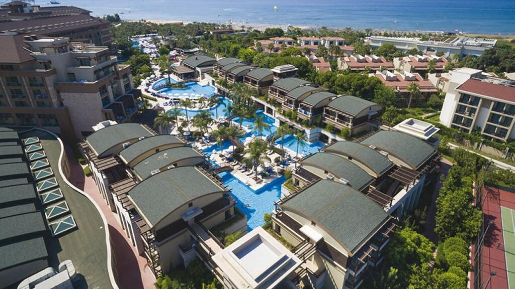 672 pokojů rozdělených do hlavní budovy (5 pater, výtahy) a samostatných vilek. Přijímací hala s recepcí, lobby bar, restaurace s terasou, 6 a-la-carte restaurací (italská, mexická, turecká, asijská kuchyně, gril, rybí speciality), turecká kavárna, bary, obchody a kadeřník. Amfiteátr. Ve venkovním areálu rozlehlý bazénový komplex se 7 tobogány (15.4.-15.10., v určité hodiny, dle počasí) a snack bar u bazénu (1.5.-6.11.). Lehátka, slunečníky a osušky u bazénu zdarma.