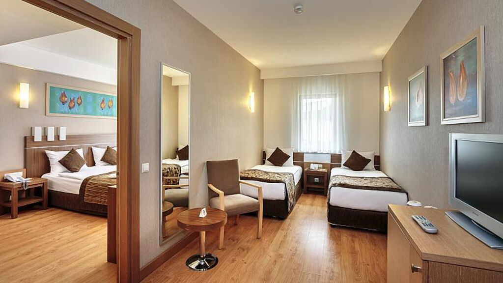 Základní informace: Turecko / Turecká riviéra / Side. Velmi oblíbený a příjemný hotel v oblasti Kumköy, který je vzdálen pouhé dva kilometry od známého centra Side, nabízí svým klientům služby na velmi dobré úrovni. Hotelový komplex, skládající se ze tří pětipodlažních budov a vilové části, se rozprostírá přímo u široké písčité pláže, na kterou se prochází upravenou zahradou. Resort je svou polohou i rozsahem služeb vhodný pro všechny věkové kategorie. Nabízí sportovní vyžití, relaxaci ve SPA centru, vhodné zázemí pro děti a zároveň je i v dosahu nákupních možností.