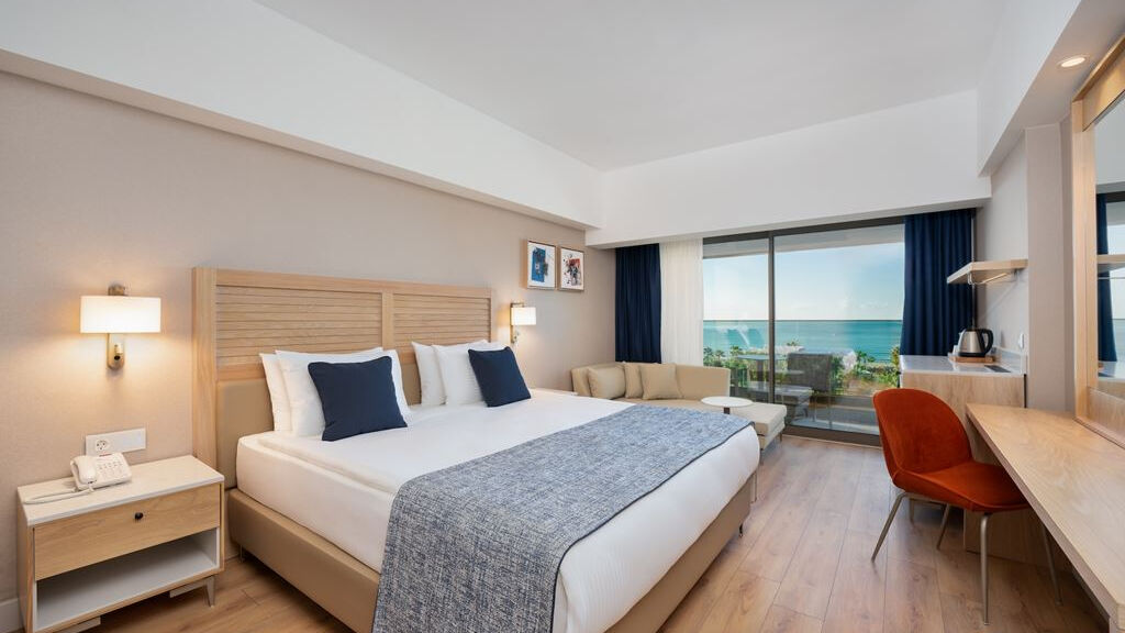 Hotel má 297 pokojů s výhledem na moře, bazén, zahradu a hory.Pokoje jsou vybavenybalkonklimatizaceLCD TV/SATminibar (voda, denně)telefonWi-Fi (za poplatek)trezorminibarkoupelna se sociálním zařízenímvysoušeč vlasůpantofle