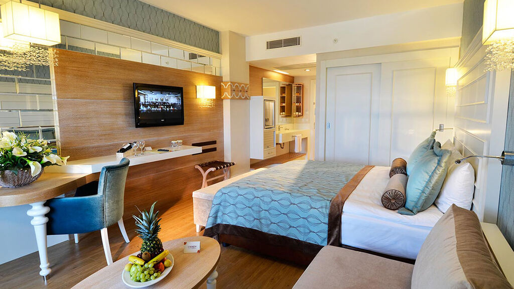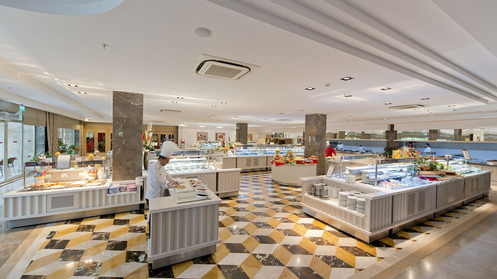 Vybavení hotelu:359 pokojů umístěných v hlavní budově (6patrová), hlavní budova rozdělena do 4 částí, 4 výtahy, vstupní hala s recepcí, hlavní restaurace, 5 Á la Carte restaurací, bary, snack bary, lékař, obchody, kadeřník, fotograf, prádelna, konferenční místnost, 4 bazény, dětský bazén, skluzavky, vnitřní bazén, lehátka, slunečníky a osušky zdarma.