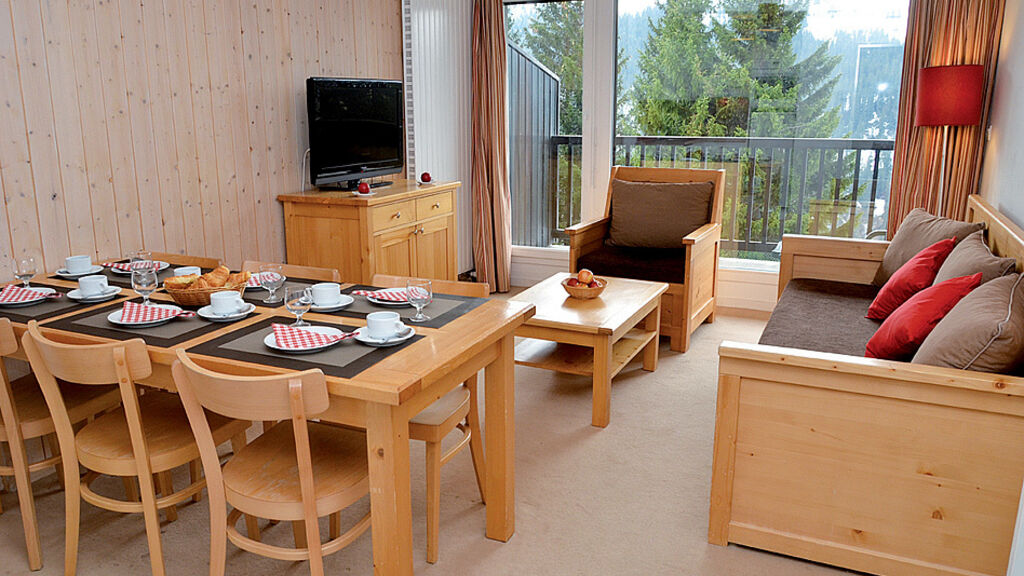 Flaine 1700 - lokalita Forêt, centrum Flaine - 400 m, skiareál Flaine - 600 m (resp. 150 m od vleku Les Gérats), skibus - 0 m