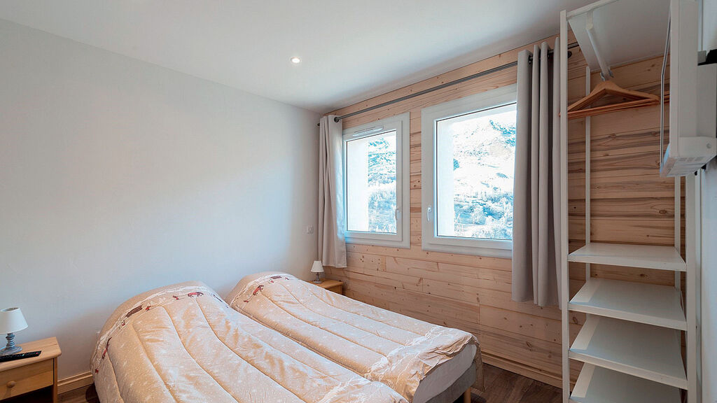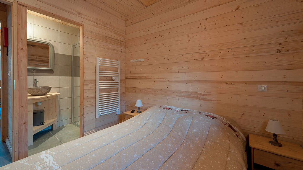 chalet 8 - 110 m² - 1. podlaží chaletu: 1 ložnice s manželskou postelí, 1 ložnice se 2 samostatnými lůžky, obývací pokoj s kuchyňským koutem, sociální zařízení, terasa; 2. podlaží chaletu: 1 ložnice s manželskou postelí, 1 ložnice se 2 samostatnými lůžky, 2x sociální zařízení (1x bez WC)