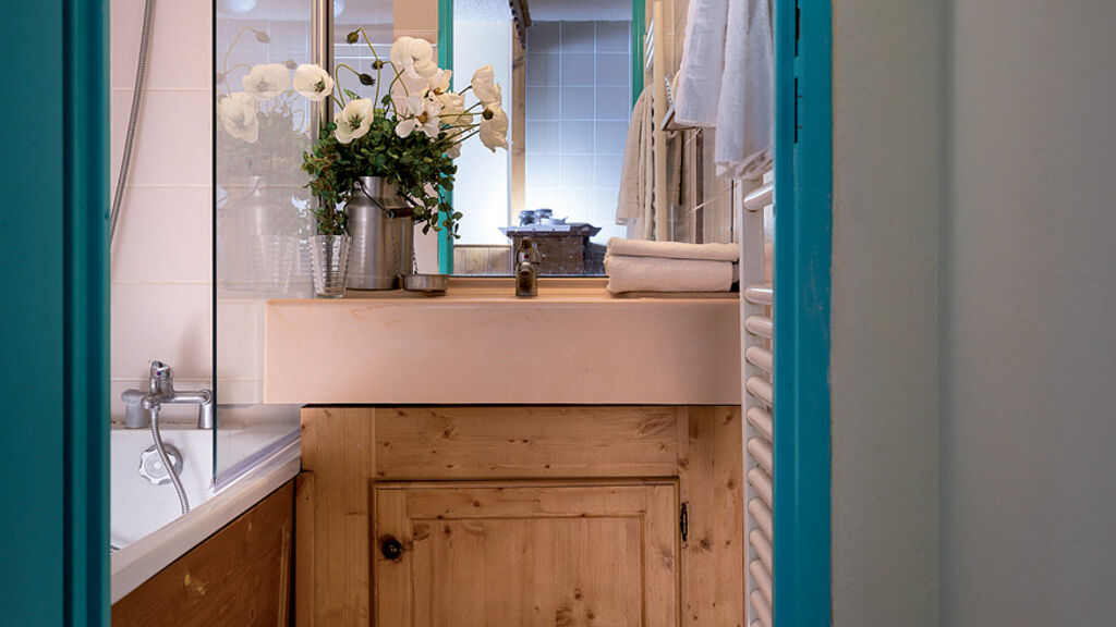 bilo 4 typ B - 27 m² - 1 ložnice s manželskou postelí s oddělitelnými lůžky, obývací pokoj s kuchyňským koutem a rozkládacím gaučem typu "šuplík" pro 2 osoby, sociální zařízení s vanou, balkon s výhledem na hory