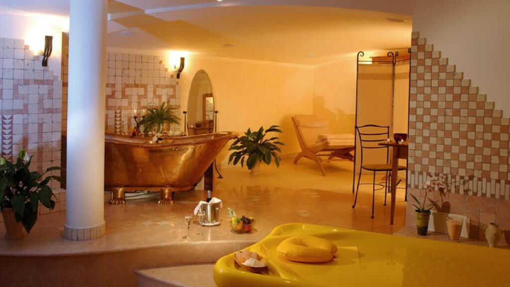zdarma: krytý bazén (cca 10 x 7 m), venkovní bazén, vířivka, sauna, bylinná sauna, venkovní sauna, parní lázeň, vyhřívané lavice, relaxační místnost, zážitkové sprchy. Za poplatek: masáže, lymfodrenáž, koupele a kosmetické procedury.