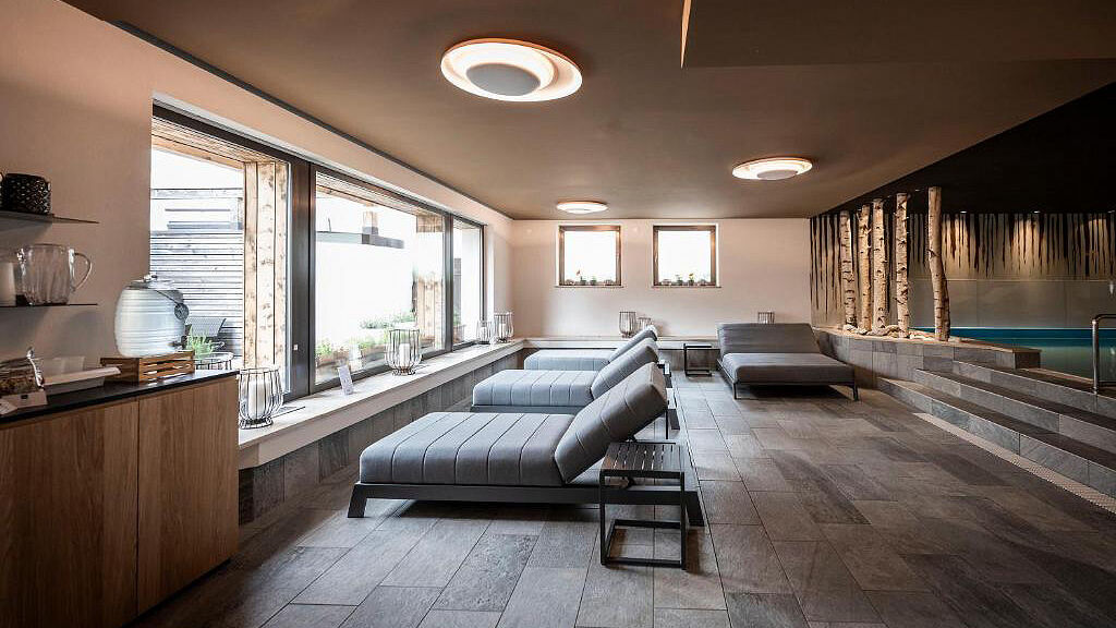 krytý bazén (cca 10 x 5 m), sauna a parní lázeň.
