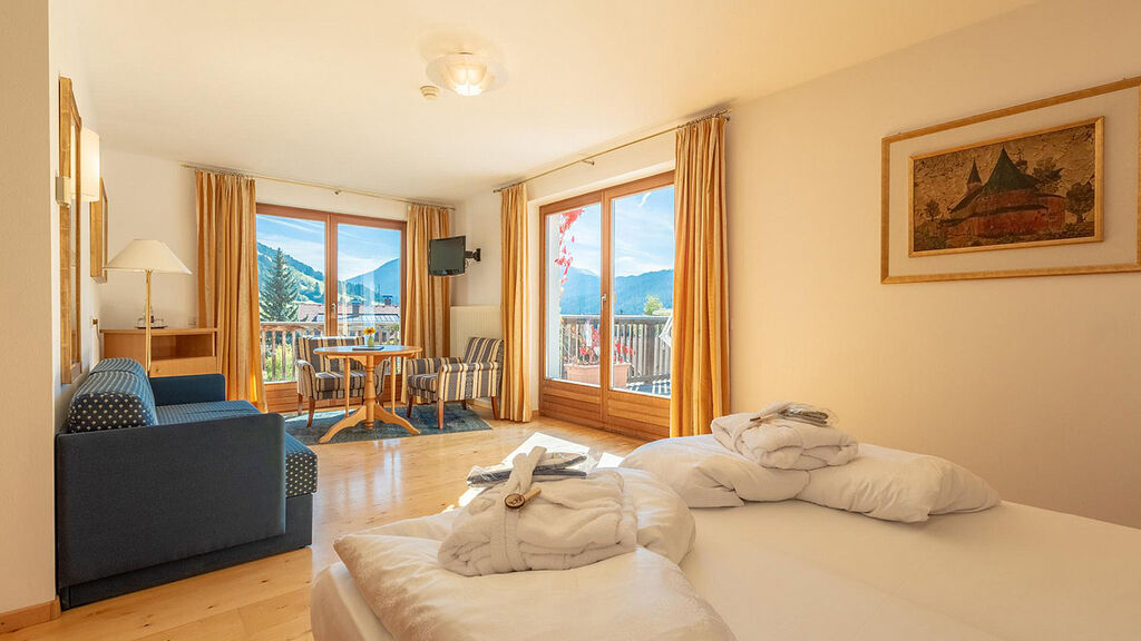 Junior Suite 2/3 - 37 m² - pokoj s manželskou postelí či 2 samostatnými lůžky a rozkládacím gaučem pro 1 osobu, sociální zařízení s vanou, balkon