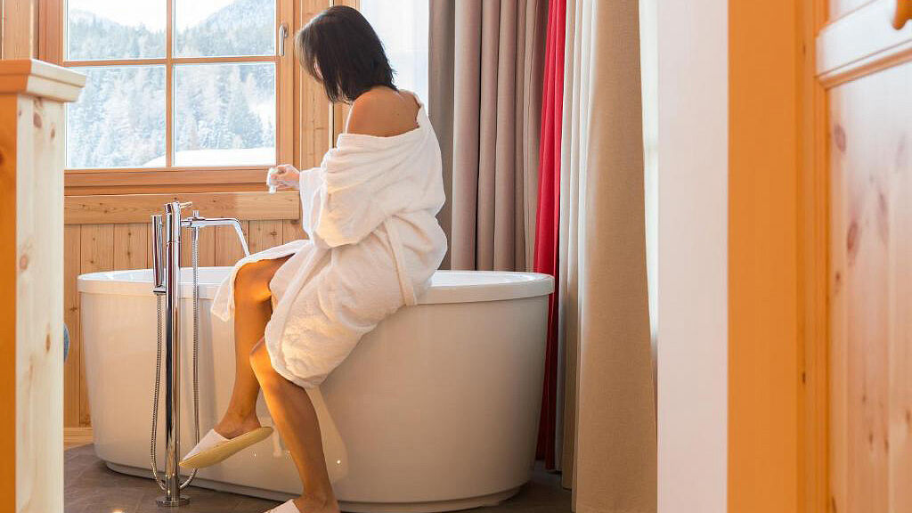 Romantic Suite 2/3 - 40 m² - pokoj s manželskou postelí, rozkládacím gaučem pro 1 osobu a samostatně stojící vanou, sociální zařízení se sprchou, balkon