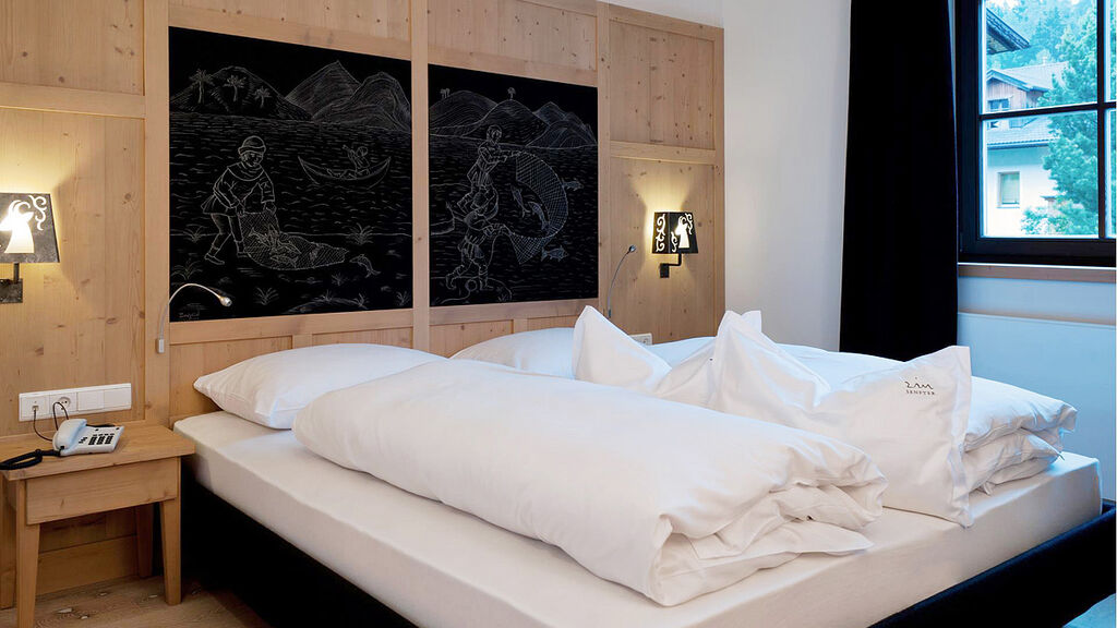 trilo 5 Sigrid Superior - 63 m² - 1 ložnice s manželskou postelí, 1 ložnice s palandou, obývací pokoj s kuchyňským koutem, tyrolskými kamny a rozkládacím gaučem pro 1 osobu, 2x sociální zařízení se sprchou či vanou, velká panoramatická terasa (40 m²)