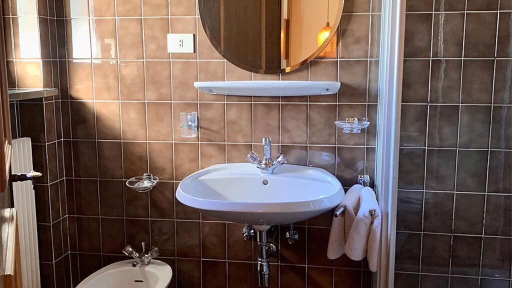 bilo 2+1 Dolomiti - 28 až 36 m² - 1 ložnice s manželskou postelí, obývací pokoj s kuchyňským koutem a rozkládacím gaučem pro 1 osobu, 2x sociální zařízení se sprchou, balkon či terasa s výhledem na Dolomity; maximální obsazenost apartmánu jsou 2 dospělé osoby a 1 dítě do nedovršených 14 let
