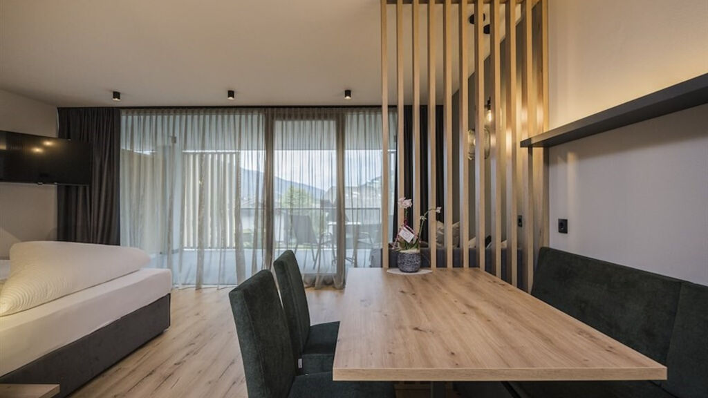 Nově postavený komplex s 27 apartmány na 3 podlažích (v budově je výtah). K dispozici je recepce, společenská místnost, pračka a sušička (za poplatek), nabíjecí stanice pro elektromobily, samoobslužný bar s nápoji a ledničkou s místními produkty a lyžárna. WiFi připojení je zdarma. Dále je v areálu wellness zóna a venkovní bazén a zahrada s lehátky a slunečníky (viz popis níže).