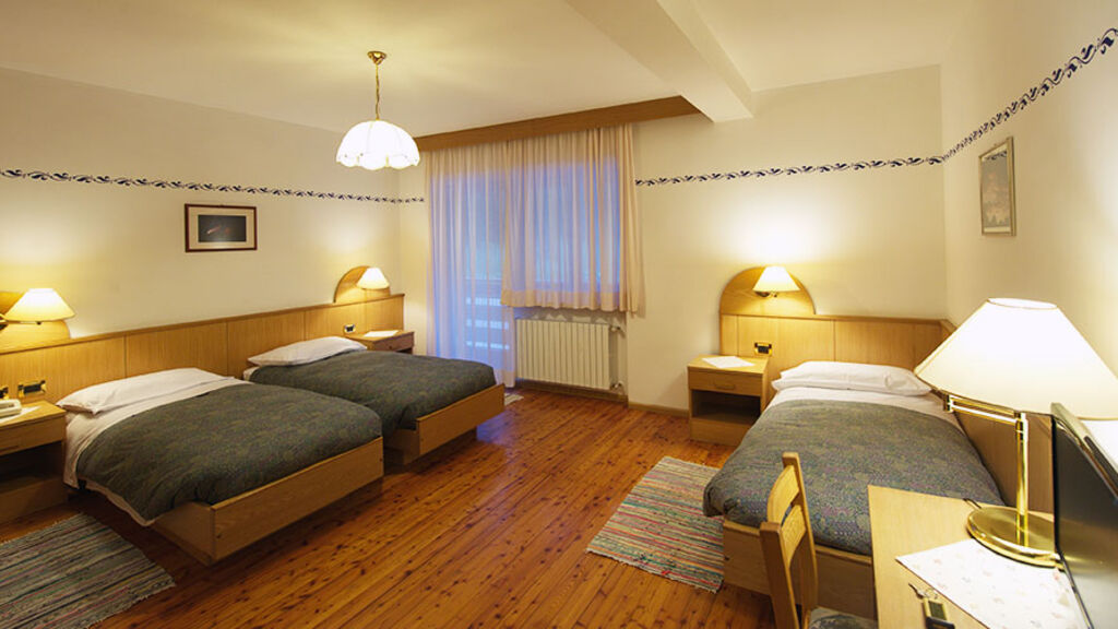 Krásný rodinný hotel s dlouholetou tradicí a ideální polohou přímo na dojezdu sjezdovky ke kabince Marmolada.Vybavení a služby:14 pokojů, recepce, restaurace s tyrolskou kuchyní z místních surovin, bar, wi-fi u baru, lyžárna, výtah, parkoviště, venkovní finská saunaUbytování: dvoulůžkové pokoje s možností přistýlky, vlastní soc. zařízení, fén, telefon, TV, sejf, balkonVzdálenosti:přímo na dojezdu sjezdovky ke kabince na Marmolada