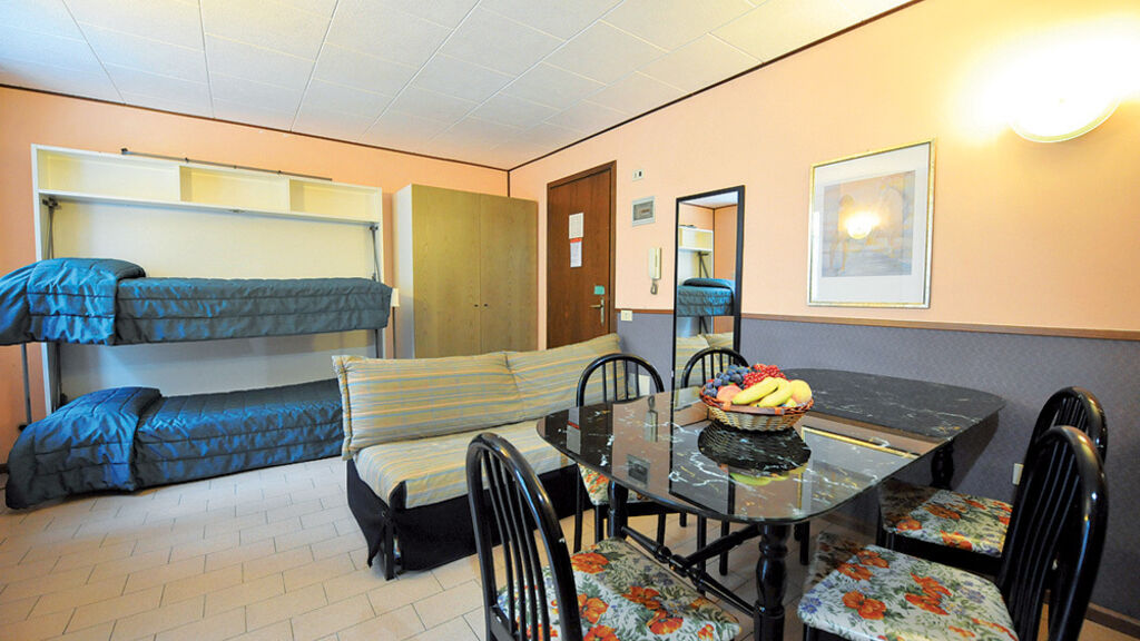 mono 3 - 20 až 25 m² - obývací pokoj s kuchyňským koutem, manželskou postelí a 1 samostatným lůžkem či rozkládacím gaučem pro 1 osobu, sociální zařízení, zpravidla balkon či terasa