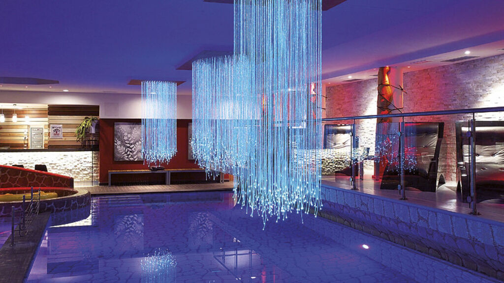 bazén 15 x 6 m s dětským bazénkem, vířivkou až pro 6 osob, protiproudem, umělým vodopádem a lehátky, venkovní vířivka#* až pro 7 osob, finská sauna#*, biosauna#*, aromatická pára#*, infrakabina#*, ledová lázeň#*, multifunkční sprcha#*, relaxační koutek#* s lehátky a hudbou, masáže*, kosmetické služby*, menší posilovna; služby označené # mohou využívat jen osoby od 16 let; v rámci relaxačního centra jsou zdarma nabízeny též bylinkové čaje