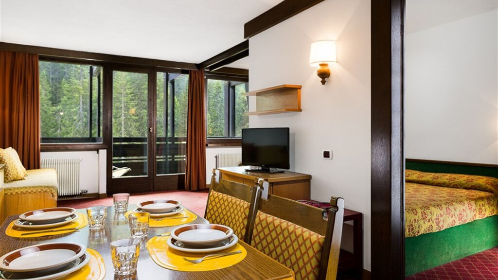 Objekt:Itálie - Madonna di Campiglio. Rezidence Ambiez je ideálním místem pro milovníky hor a lyžování. Je vybavena wellness, kde můžete odpočívat a sbírat síly na další den. Rezidence se nachází v blízkosti kabinkové lanovky Groste. Apartmány jsou vybaveny v alpském stylu s krásným výhledem na okolní přírodu.