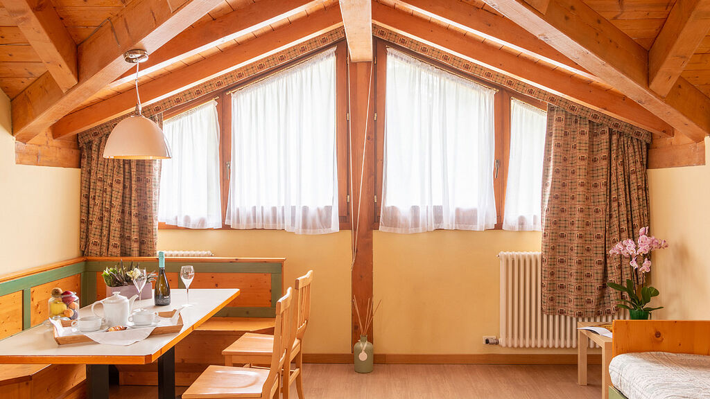 3 sousedící budovy, centrum Folgaridy 1,5 km, skiareál Marilleva/Folgarida 20 m.