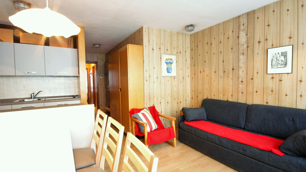 Apartmán QUADRI – 6/7 osob: prostorný obývací pokoj s kuchyňkou a samostatnou postelí, koupelna/WC,