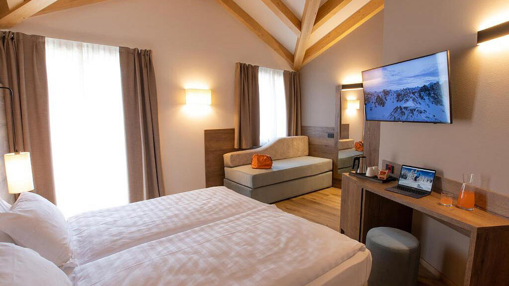 perfektní lyžařská poloha prakticky přes ulici od lanovky a současně přímo v centru městečka Andalo příjemný hotel s rodinnou atmosférou, ochotný personál a chutná místní kuchyně komfortně vybavené pohodlné pokoje