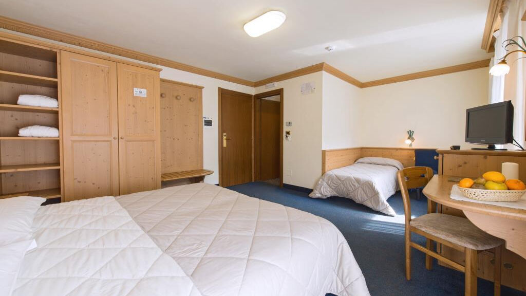 Dvoulůžkové pokoje (A2A): cca 20 m2, trezor, TV, telefon, posezení, chladnička (na vyžádání), fén, sprcha, bidet, WC a balkon. Rodinné pokoje (A3B): cca 38 m2, stejné jako A2A.