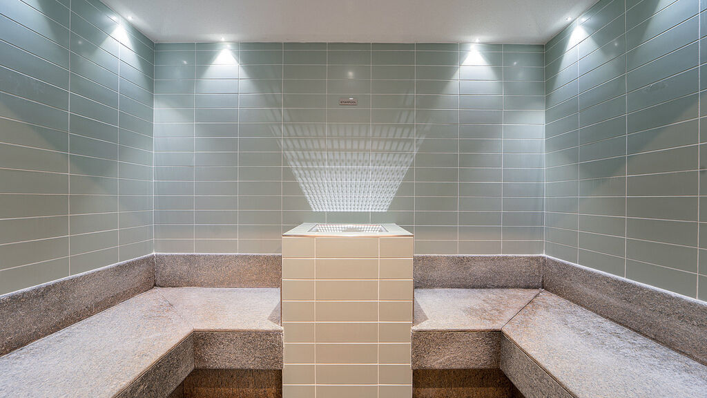 relaxační bazén* 65 m², vířivka* až pro 5 osob, finská sauna*, pára*, relaxační koutek* s lehátky, masáže*, kosmetické služby*, posilovna*